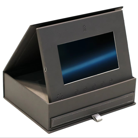 Cajas de vídeo de pantalla LCD grande de lujo, papel de textura, cartón personalizado de negocios para regalos promocionales
